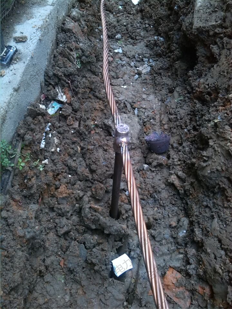 電纜制式銅覆鋼接地絞線雖然在一定程度上解決了熱鍍鋅材料制作接地網(wǎng)的壽命、安全等問題,造價上又比純銅材料具有一定的優(yōu)勢,但按照電纜規(guī)格制作銅覆鋼接地絞線銅層厚度不及要求的0.254mm最小厚度的40%甚至10%,隨著近幾年來電纜制式銅覆鋼接地絞線的逐步應(yīng)用,其所具有的缺陷逐漸顯露出來。即股數(shù)多、空隙大、易存水土、易腐蝕、銅層薄、壽命短等問題。