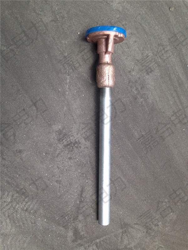 埋入式雜散電流引出端子由銅端子和圓鋼采用放熱焊的焊接工藝焊接而成,廠家供貨時(shí)提供的是整體構(gòu)件。該端子是一個(gè)銅材與鋼材的焊接體,上端部分為銅材,其長(zhǎng)度大于50mm。銅端子下部焊接的圓鋼或其他材料長(zhǎng)度一般情況下不小于500mm,若特殊地段軌道結(jié)構(gòu)不能滿足不小于500mm要求,可根據(jù)實(shí)際情況調(diào)整,但不能小于300mm。這種端子銅含量不低于98%,銅端子為鍛壓工藝制造,與φ16圓鋼之間的連接處接觸電阻值要求小于30微歐,銅端子與下部材料焊接結(jié)合處面積不小于800mm2。出廠時(shí)廠家使用微電阻檢測(cè)儀對(duì)焊接處的電阻值進(jìn)行抽檢,確保接觸電阻值符合技術(shù)要求。為防止土建施工時(shí)其它雜質(zhì)覆蓋銅端子表面,或進(jìn)入螺栓孔洞而影響其導(dǎo)電及連接,銅端子表面及螺栓孔洞具有尼龍或塑料螺栓保護(hù)措施。